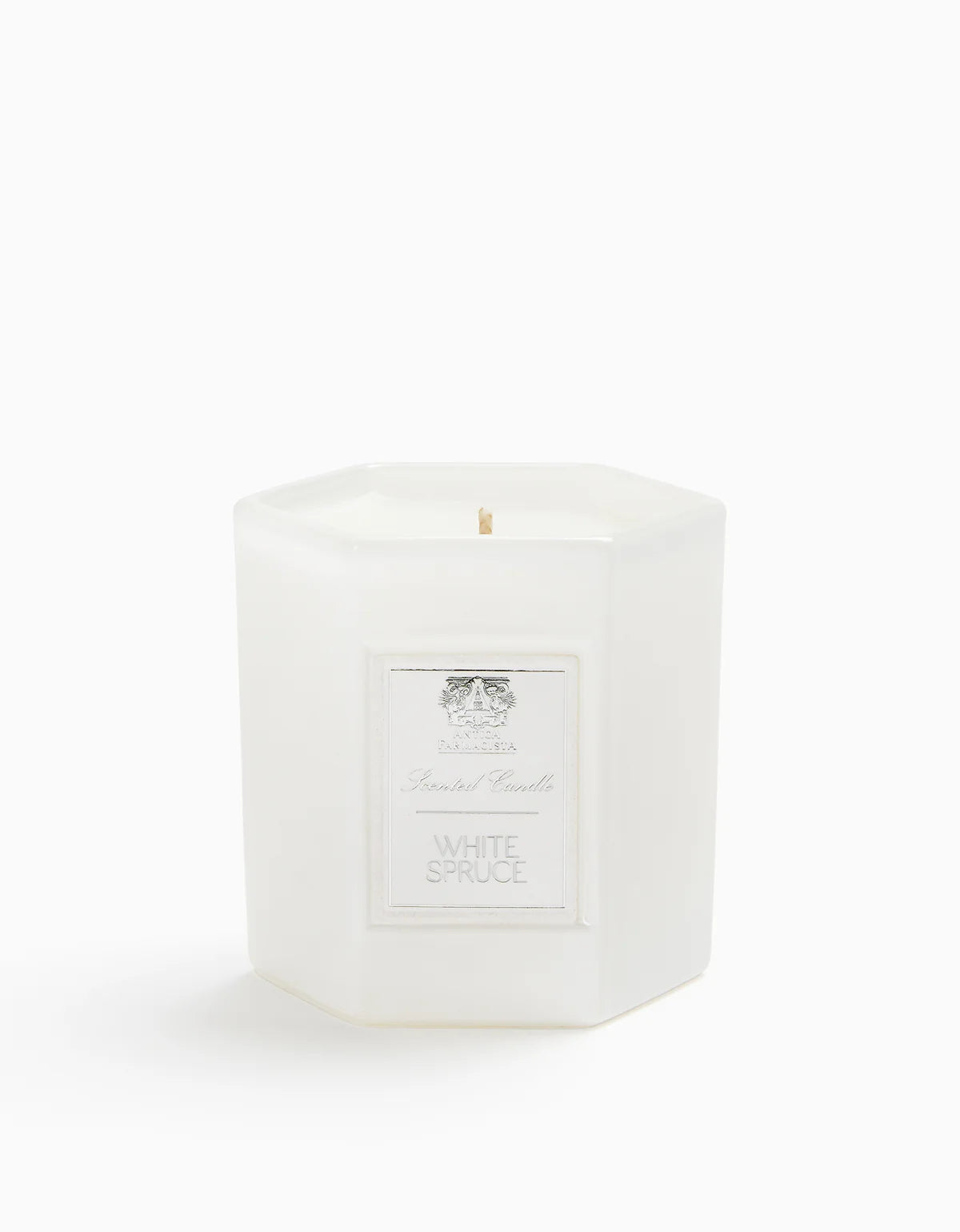 The Fragrance: Evocative of the rich natural wonder of the forest, White Spruce is green, earthy, and utterly transporting. Freshly-cut branches of evergreen trees mingle with bursts of grown-up citrus top notes for a refined twist. An undercurrent of a warm woods accord imparts a lasting, ambery softness. And just so we know we’re celebrating, a caramelized, touch-of-resin sweetness found in the base is a welcome pang of delight.